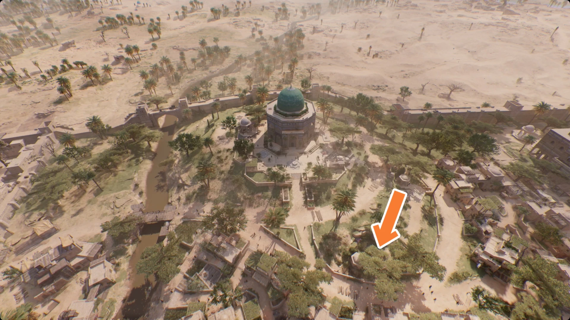 Первая часть головоломки «Восторг у купола» находится рядом со смотровой площадкой мечети к юго-западу от Круглого Города. Награда за неё — «Таинственный Талисман». Чтобы найти подсказку, отойдите к северо-востоку от смотровой площадки и загляните внутрь пристройки с арками.