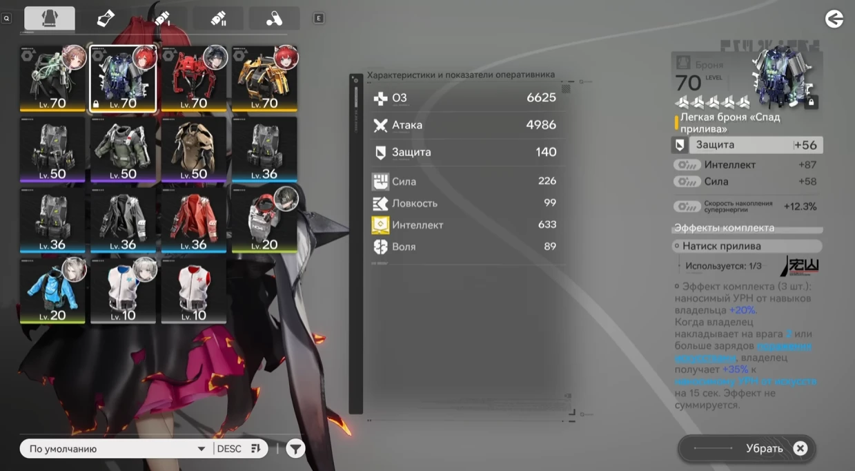 Нагрудник берите из сета «Натиск прилива». Он даёт статы на интеллект и силу, которые напрямую влияют на силу атаки. Бонус сета увеличивает скорость восстановления ультимейта, что важно для персонажа.