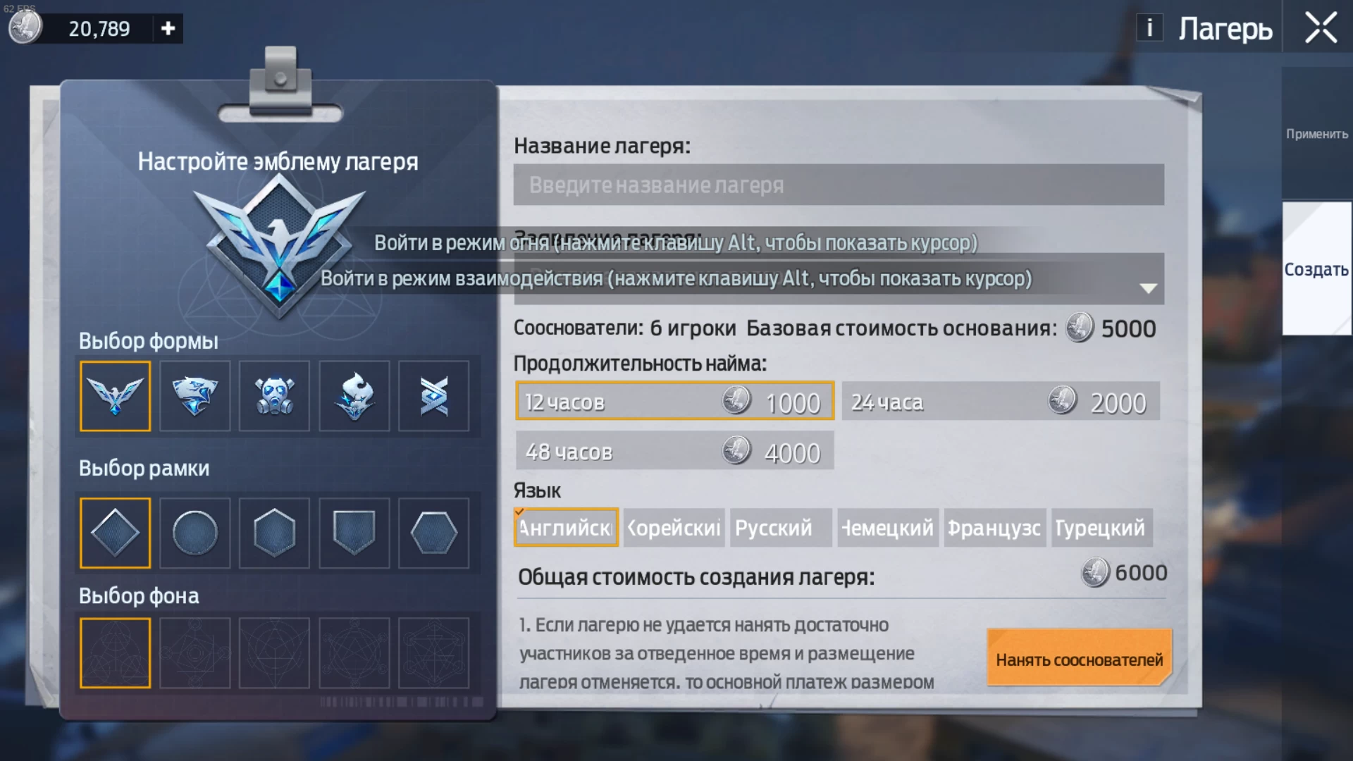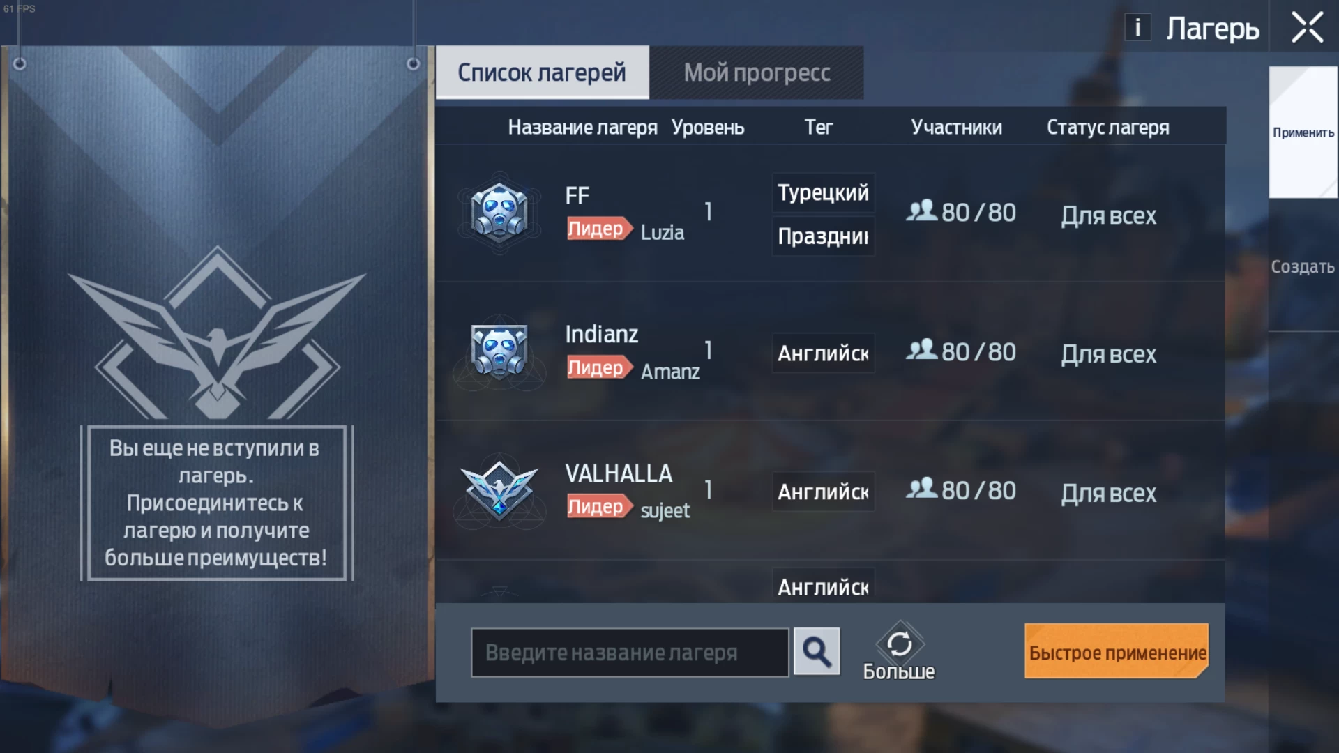 Лагерь — аналог кланов или гильдий в различных многопользовательских играх.