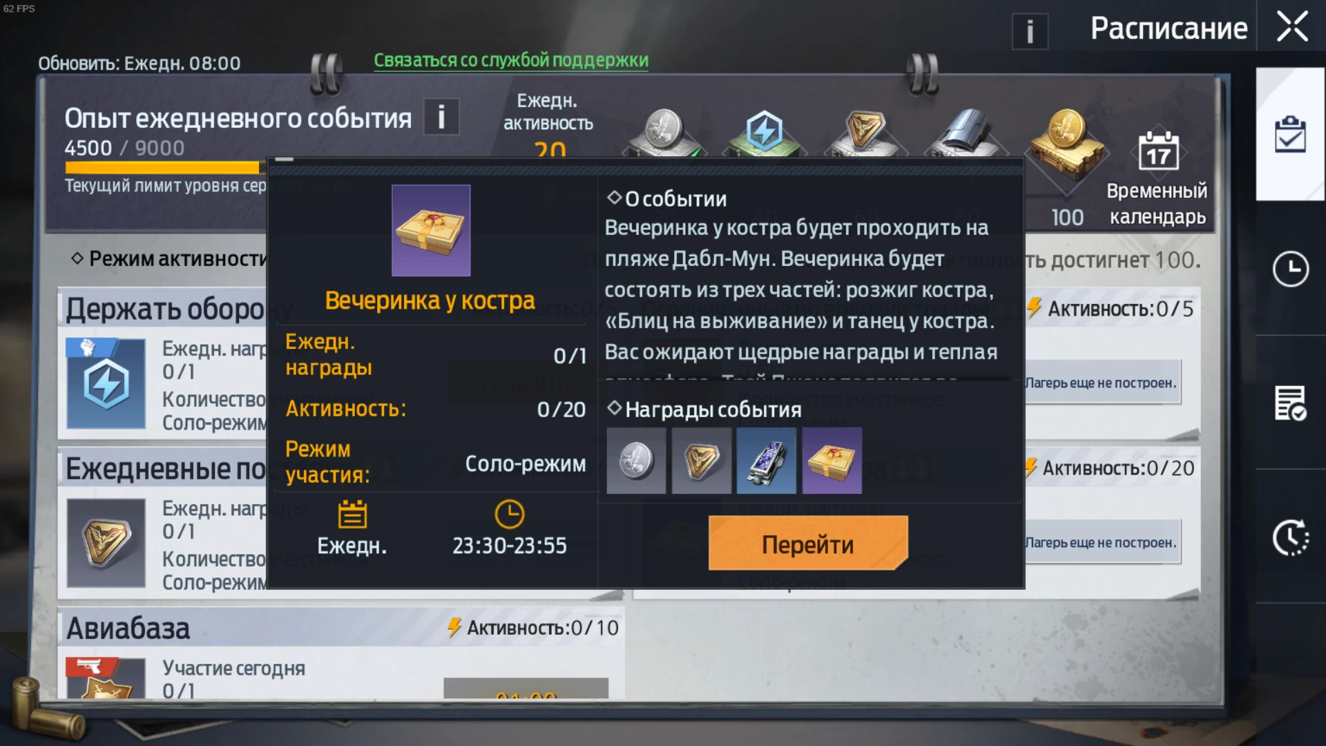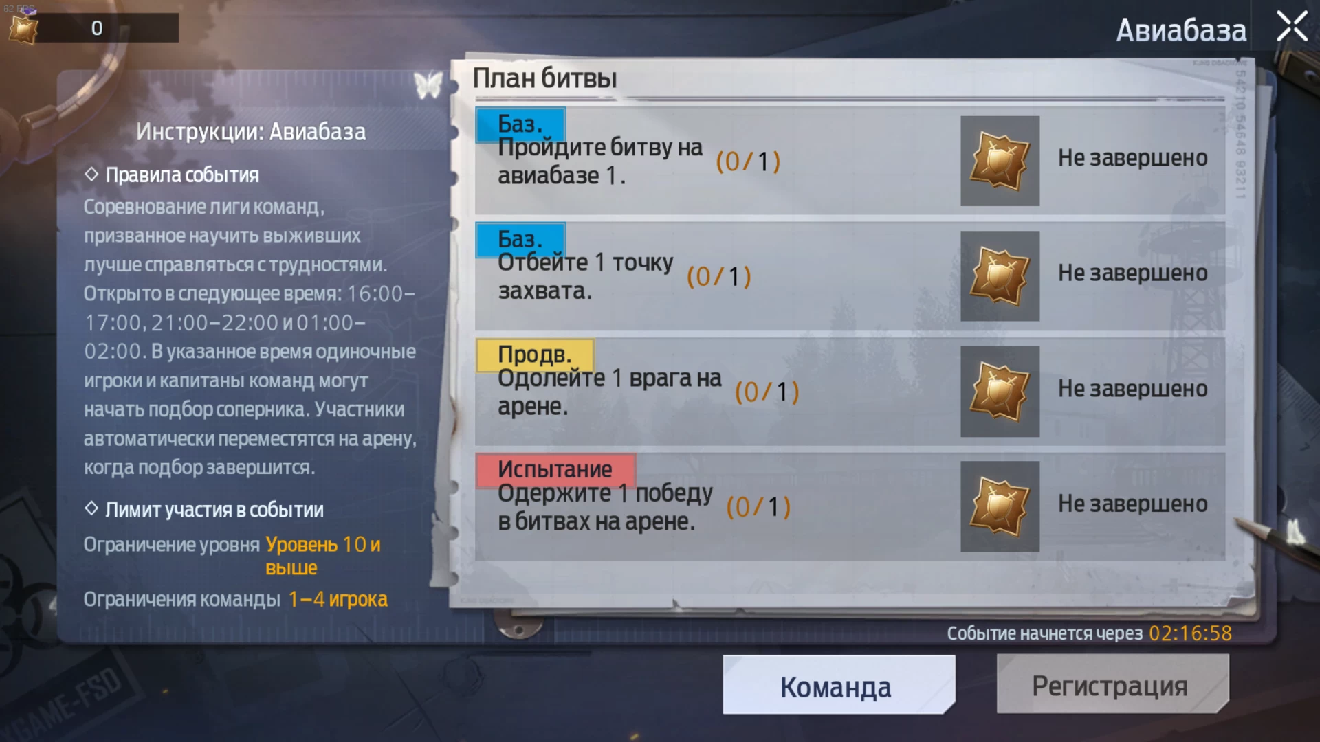 - Различные ежедневные события; все они, за исключением авиабазы — схожи. В авиабазе вам нужно будет отточить свои навыки совместно с командой и пробежать до конца базы;