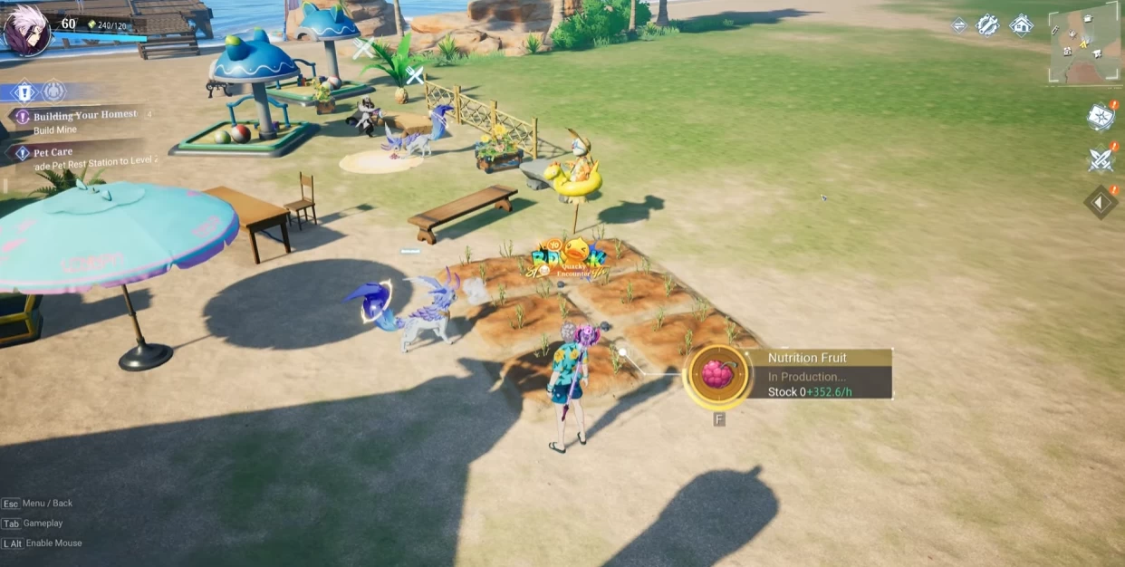 Что касается геймплея на этом острове, то он сильно напоминает Palworld. Так, помимо красивых зданий и скамеек вы будете строить промышленные аппараты: например, станок для нарезки древесины. Работать на них нужно не вручную, а используя фэнтези-существ. Они могут добывать древесину, руду, камни и еду. Всё это нужно для фарма ресурсов для новых построек.