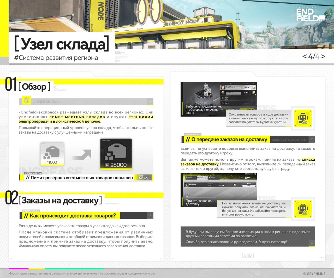 «Endfield-экспресс» размещает узлы склада во всех регионах. Они увеличивают лимит местных складов и служат станциями электропередачи. Повышайте операционный уровень узлов склада, чтобы открыть новые заказы на доставку с улучшенными наградами.