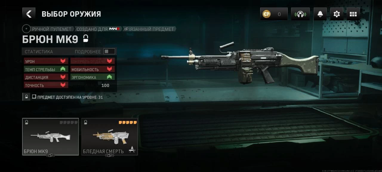 Первое место занимает лёгкий пулемёт Брюн MK9, который отличается высоким уроном и контролируемой отдачей. Оружие идеально подходит для подавляющего огня на средних и дальних дистанциях из-за своего объёма магазина, но вот темп стрельбы не так высок, как хотелось бы.