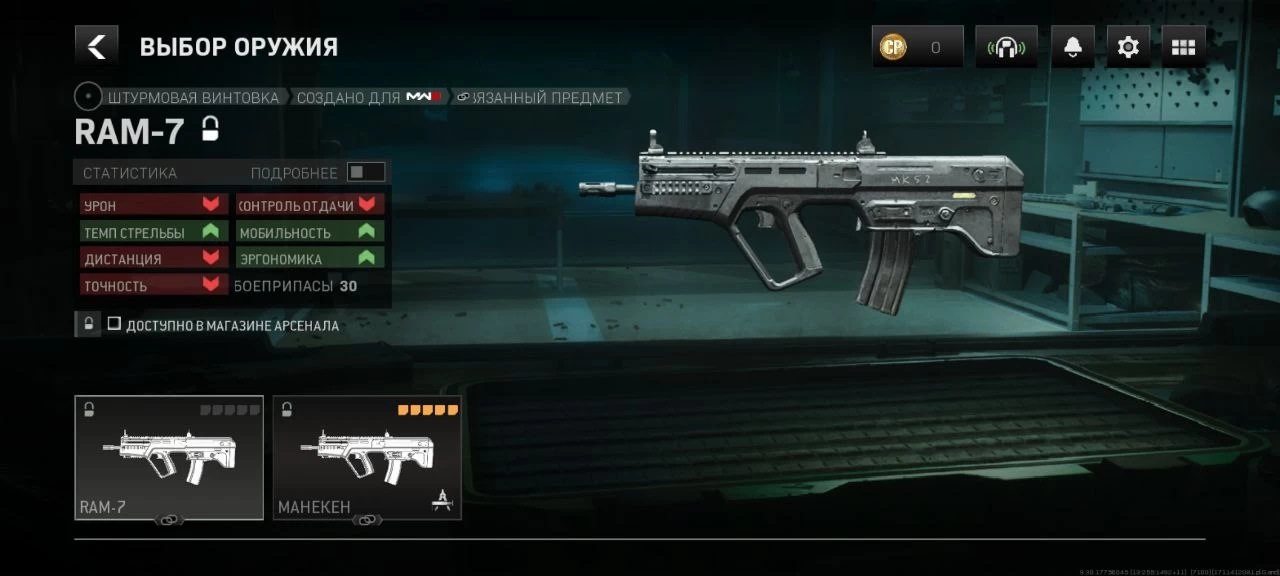 Пятое место занимает надёжная штурмовая винтовка RAM-7 — универсальный вариант для самых разных ситуаций от ближней до средней дистанции. Обладает высокой скорострельностью, точностью и средней отдачей. В основном советую брать её именно для агрессивных сражений из-за быстрой перезарядки и скорости стрельбы.