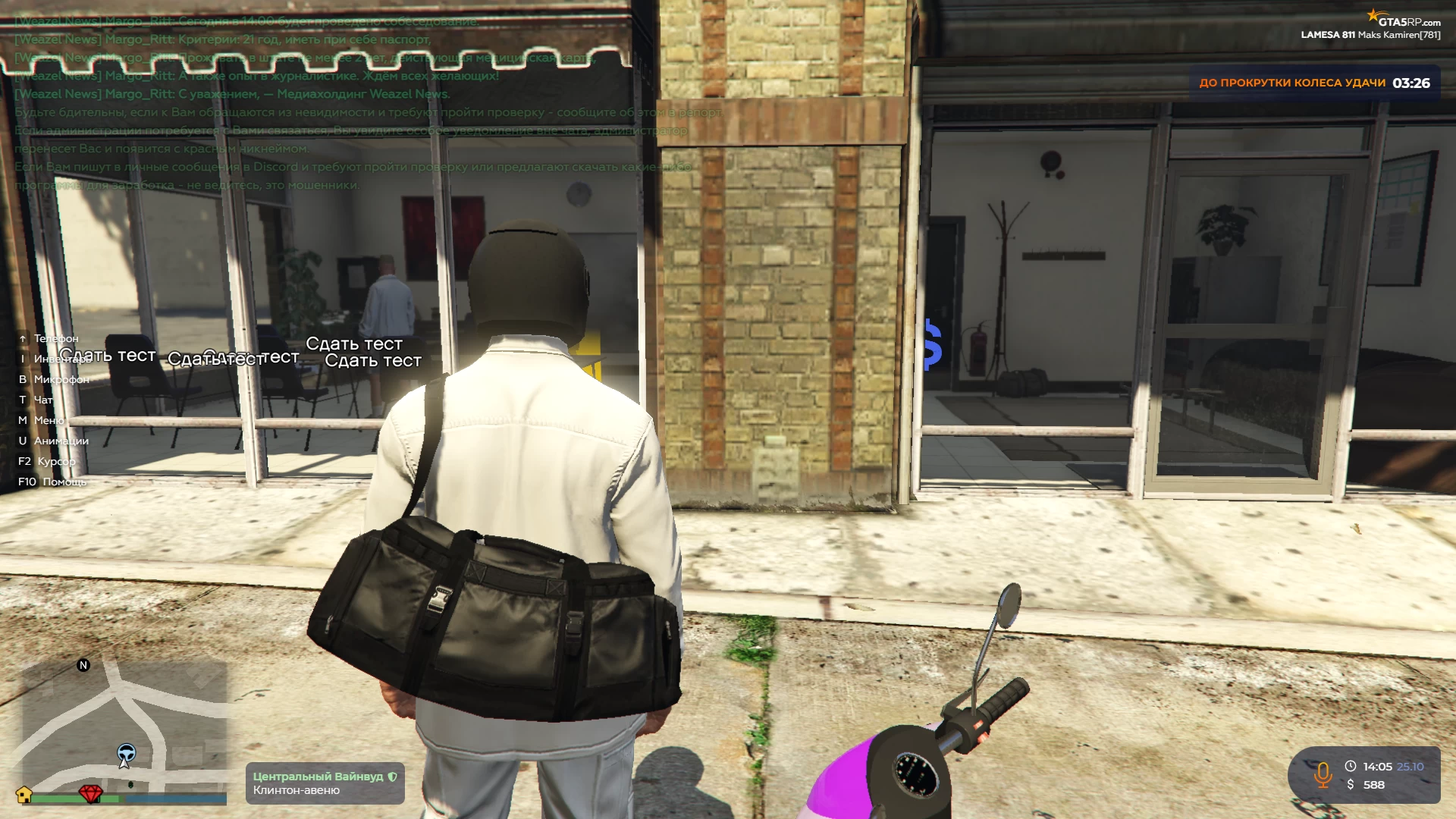 Отбегая от Майкла, вы увидите ещё одного NPC — местный арендодатель, у которого сможете арендовать скутер за 100$.