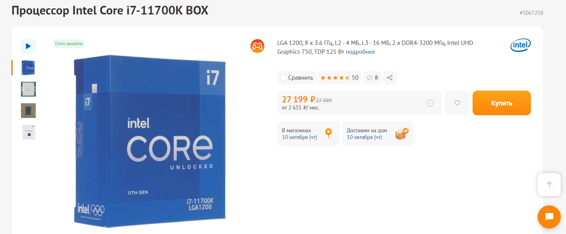 Intel Core i7-11700K стоит 27 199 рублей, а AMD Ryzen 7 5800X стоит 20 799 рублей. Разница между этими комплектующими почти в 7000 рублей, поэтому в конце я посчитаю цену сборки на Intel и AMD.