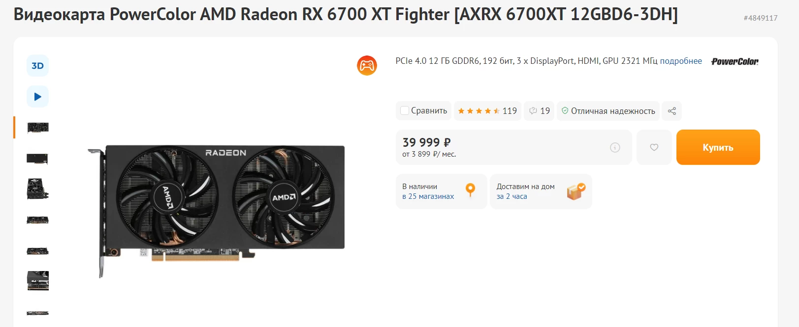 NVIDIA GeForce RTX 3070 8 ГБ (MSI) стоит 42 297 рублей на OZON — в DNS такие карты больше не продают. AMD Radeon RX 6700 XT стоит 39 999 рублей в DNS и предлагает 12 ГБ памяти вместо 8 ГБ.