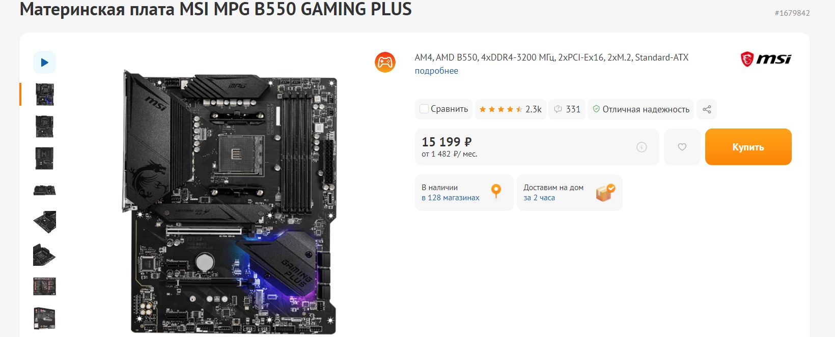 Выбор «материнки» зависит от процессора — для AMD выбираем B550/X570, а для Intel выбираем Z590. За варианты AMD придётся отдать около 15 000 рублей, а для Intel уже придётся раскошелиться на 24 284 рубля.