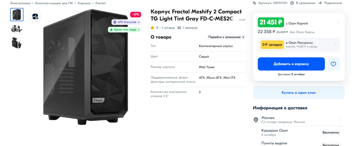 - Fractal Meshify 2 Compact TG — 21 451 рубль.