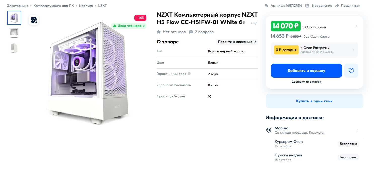 - NZXT H5 Flow — 14 070 рублей.