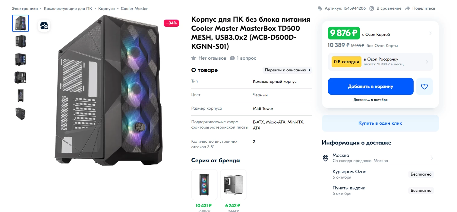 - Cooler Master MasterBox TD500 Mesh — 9 876 рублей.