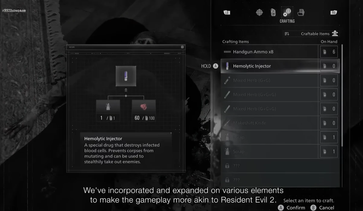 В остальном система крафта схожа с той, что вы видели в Resident Evil 2.