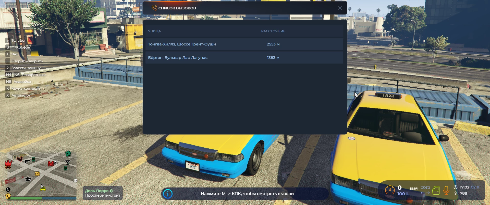 После того как арендовали такси, у вас появится возможность смотреть вызовы. Для этого нажмите М → КПК.