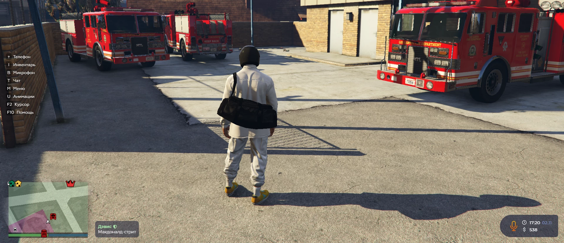 Прибыв на пожарную станцию вам необходимо будет переодеться, чтобы начать работать. После этого следите за вызовами, которые можете посмотреть, нажав на М → Список вызовов.