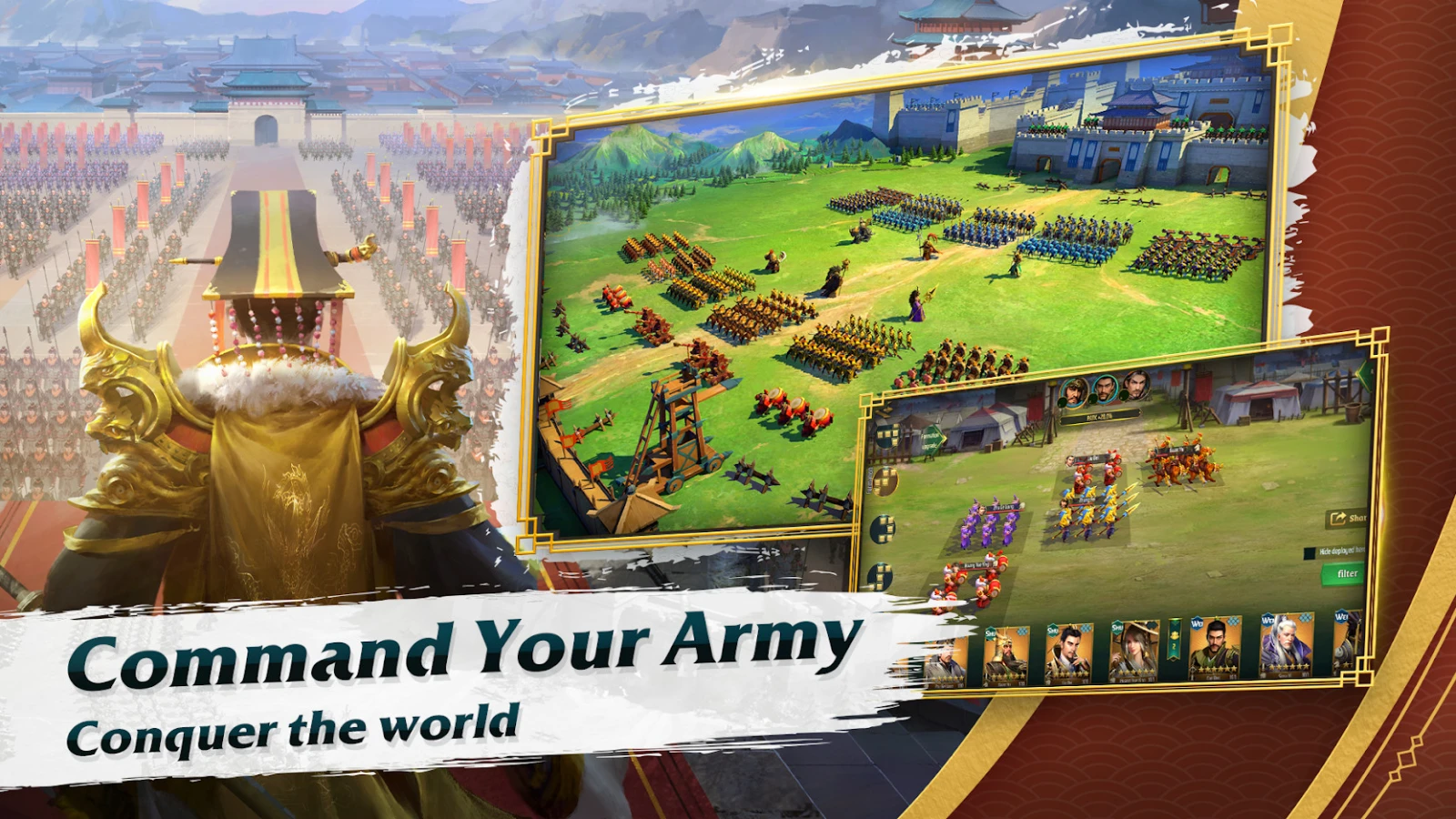 3 Kingdoms: Siege & Conquest — мобильный проект, в нём озвученные диалоги, жалко только, что на английском. Поначалу у нас небольшой замок с парой строений. Постепенно мы будем нанимать редких полководцев (выбивать через гачу) и отстраивать новые здания. Для прокачки в 3 Kingdoms имеются задания, они помогут освоиться в расширении владений своего королевства, а также в ведении боевых действий.
