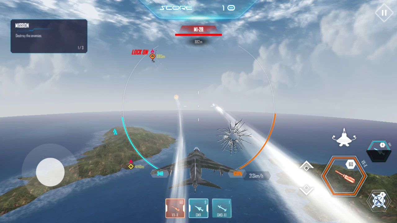 Управляйте настоящим истребителем и присоединяйтесь к битве. Простая стрелялка, которая способна увлечь на небольшое время. Игрокам предстоят различные миссии на разных моделях истребителей. Также самолеты можно улучшать и модернизировать боевой запас.