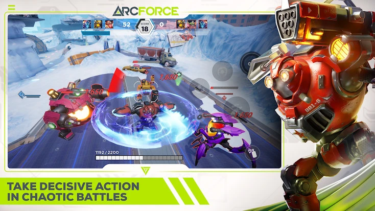 Arcforce – 3v3 Hero Shooter — это мобильный экшен. По задумке игроки разбиваются на две команды в формате «3 на 3» и сражаются в реальном времени. Делают они это на роботах разной формы. Для доминации на поле боя есть разного рода абилки, например, ракеты, щиты и рывки.