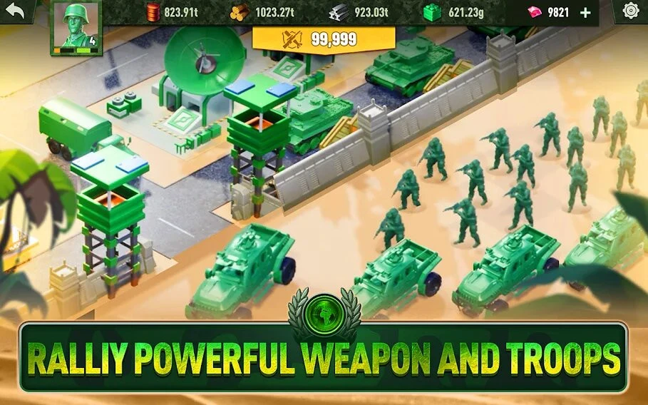 Это стратегия, где мы развиваем базу игрушечных солдатиков, перед которыми стоят неигрушечные цели. Дело в том, что началась Третья мировая и многие территории захвачены военными лордами и прочими бандитами. Если верить описанию, то для победы над врагом мы должны участвовать в битвах в формате «собери три в ряд».
