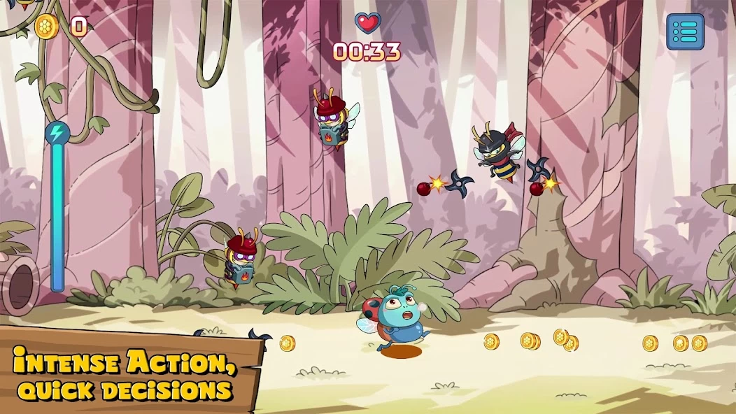 Bomber Wasp — мобильная игра, которая по рисовке и геймплею напоминает Cuphead. На этот раз вместо чашек игрок будет управлять божьей коровкой, чья цель это добраться до конца уровня и выжить. Дело в том, что на пути будет много лесных врагов, в основном злостных ос.