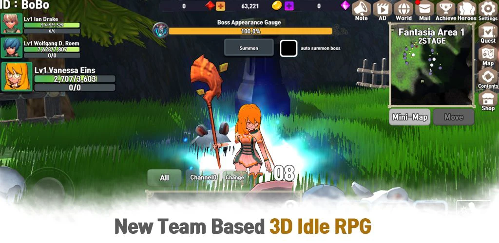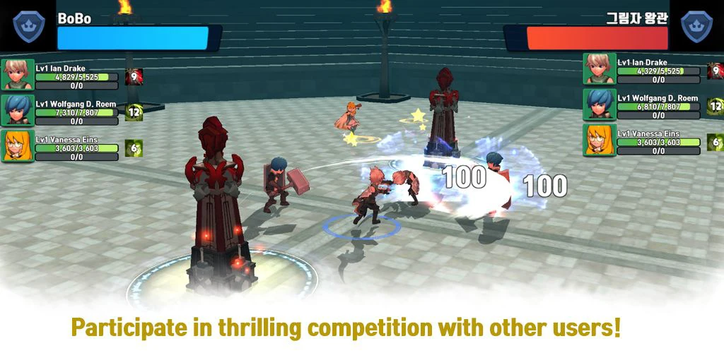 В Brave Arena сражаются автоматически группы героев, мы можем только активировать ульту. Сражаются они на небольших локациях, где к ним подбегают волны врагов; на первых порах это серые слизни. Персонажи различаются по уровню редкости, от этого зависит их характеристики и скин. На выбор есть множество арен, но они открываются только после прохождения предыдущих миссий.