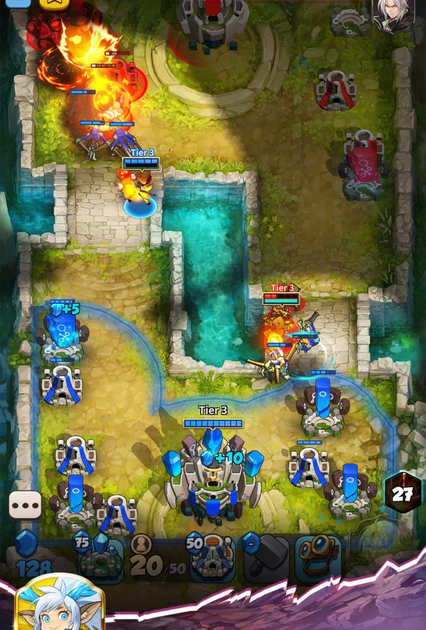 Сражения проходят на небольшой арене, геймплей вертикальный. Из башен выбегают мобы, которые атакуют вражеские постройки. Так как проект азиатский, то он выполнен в аниме-стилистике. Башни различаются по уровням, на их постройку тратятся кристаллы. Битвы затяжные, на экране происходит мало экшена. У героев есть специальные абилки.