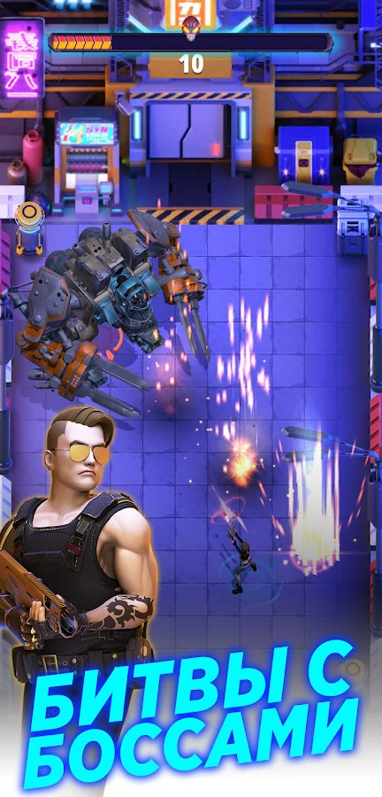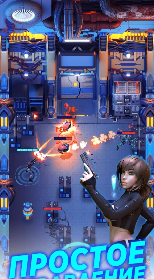 Вкратце — это изометрический раннер, где мы можем полностью управлять персонажем. Он перемещается из уровня в уровень, сложность которых каждый раз повышается. Получается, что чем дальше пройдём, тем лучше награда. С врагов выпадают монетки. Игровой процесс Cyberpunk Hero выполнен в вертикальном режиме; стрельба автоматическая.