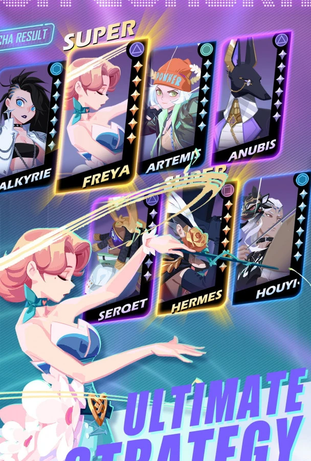 Здесь вертикальный игровой процесс, мультяшная графика и собирание редких персонажей (гача). Сражения пошаговые и автоматические. После победы мы прокачиваем уровень профиля, персонажей, а также получаем разные материалы. Кстати, местная графика очень напоминает стиль AFK Arena. В самом начале нас ведут за ручку в ходе обучения. Есть лутбоксы с новыми персонажами; для того, чтобы их открыть, надо сначала покрутить диск, как диджей.