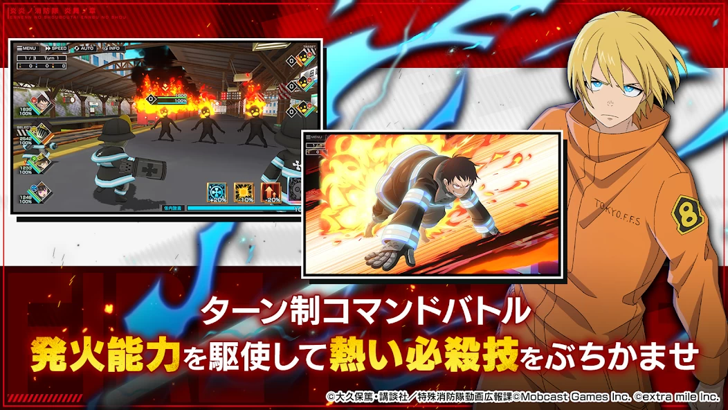Fire Force Game — мобильная игра в жанре RPG и с аниме-графикой. Fire Force Game делают по мотивам аниме «Бригада пылающего пламени». По сюжету большую часть мира поглотило пламя, поэтому выжившие осели в Токио.