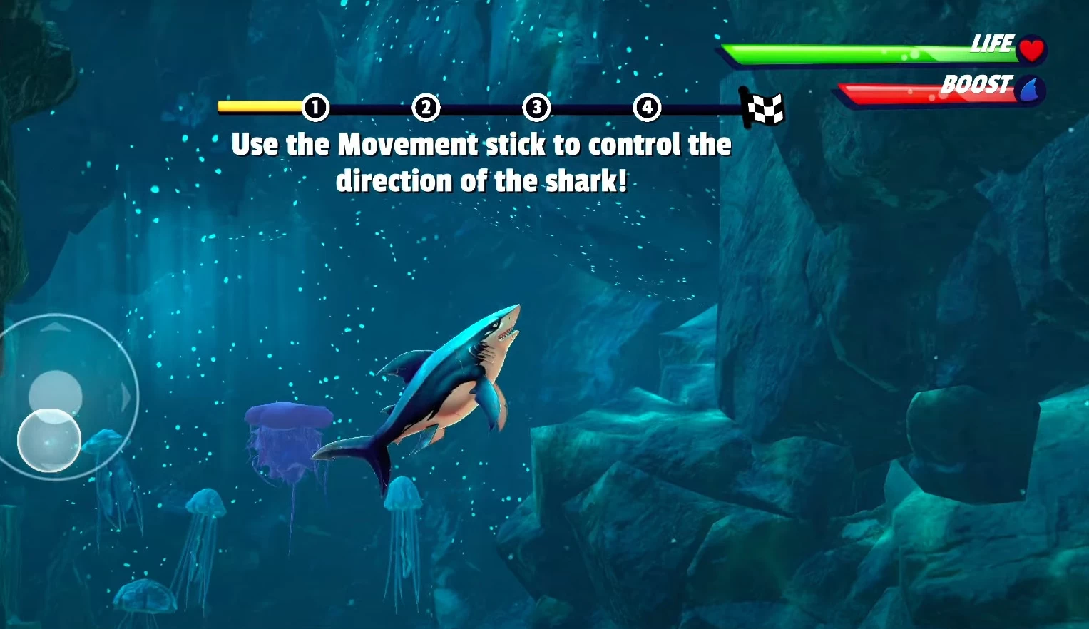 Игрок берёт на себя роль акулы, которая поедает мелких рыб. Со временем она будет расти, чтобы уже атаковать не только людей, но и более сильных акул и даже доисторических динозавров.
