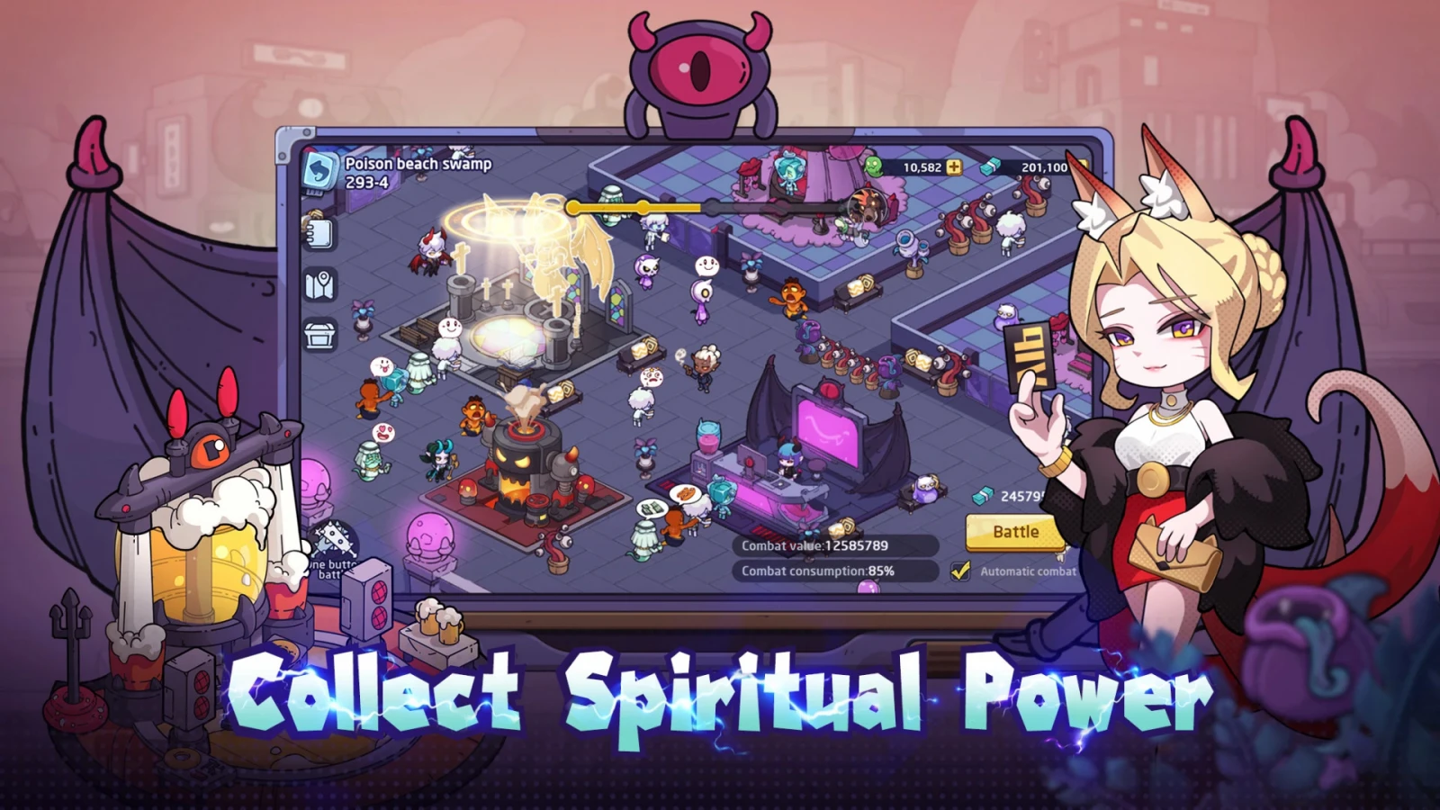 Idle Hell Company — симулятор магната с мультяшной картинкой. Игрокам дадут роль менеджера парка развлечений, который ещё по совместительству помогает призракам, зомби и прочей нечисти с реинкарнацией. Постепенно вы откроете новые аттракционы и сможете привлекать больше посетителей; это также повышает общий уровень силы, что пригодится при состязании с другими игроками за звание «Адского Босса».