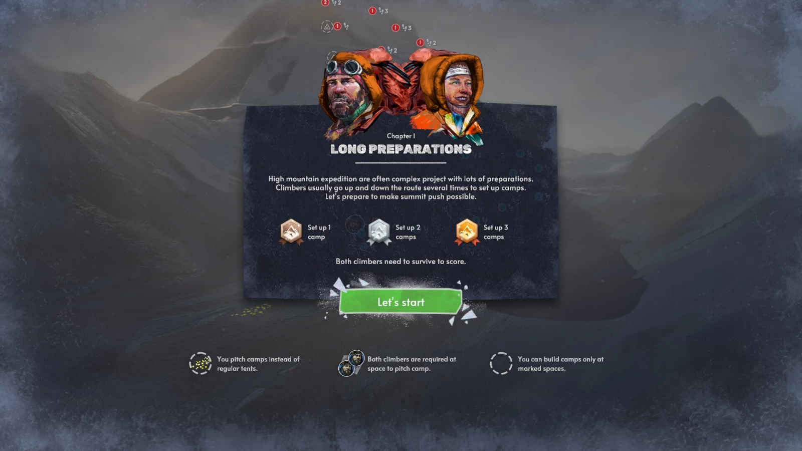 По сюжету и геймплею игрокам выдают одинаковую колоду карт, с помощью которой они контролируют команды альпинистов, пытающихся взобраться на вершину горы и спуститься с неё в безопасности.