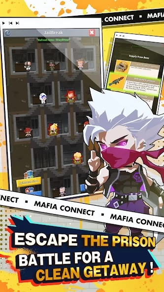 Mafia Connect — мобильная игра. Разработчики позиционируют её как RPG с элементами из авто-шахмат. А так как игрокам предстоит развивать свою мафию, они будут обустраивать штаб-квартиру и призывать в неё редких персонажей. Осторожно, некоторые из них могут попасть в тюрьму и тогда им придётся помогать в ходе мини-игр.