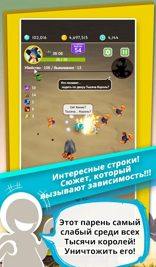 Magical Girl Story — мобильный проект, который доступен в Google Play. В нём вертикальный и довольно простой геймплей. По задумке авторов мы играем за волшебницу, которая от скуки решает уничтожить местную популяцию крабов и других монстров. Делает она это в авто-режиме, нам же надо только перемещать волшебницу дальше от врагов.