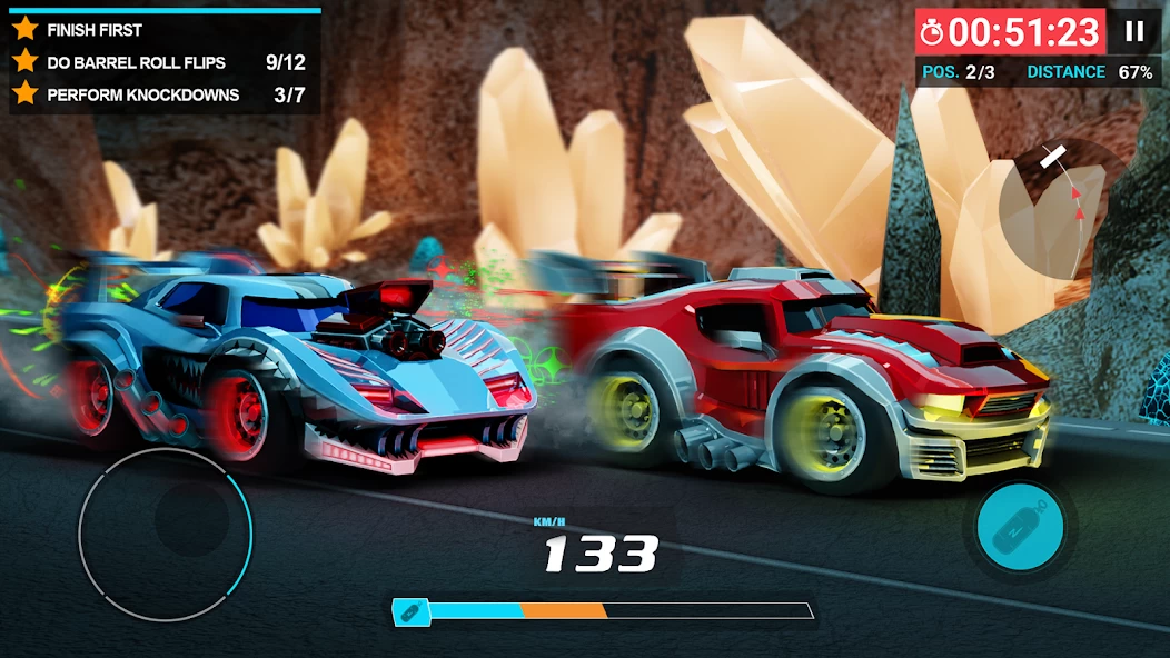 Геймплей в Max Speed настолько аркадный, что возникает ощущение, словно это скорее раннер, нежели гонки. Например, с трассы вылететь нельзя — ваша миниатюрная машина поможет повернуть на полной скорости и не попасть в зубы тиранозавра, который поставлен на треках вместе с остальными динозаврами, создавая ощущение парка аттракционов.