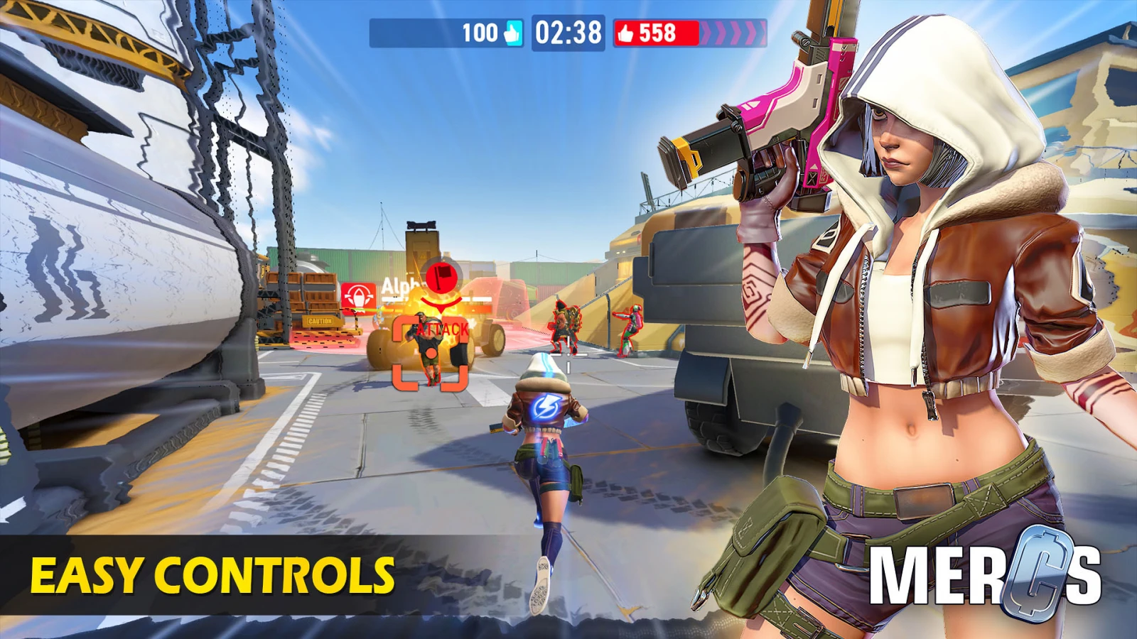 Разработчики этого проекта не пытались слизать карты и модельки бойцов с Counter-Strike: Global Offensive, что уже хорошо. Кстати, персонажи прикольные; есть, например, качок с огромным рюкзаком и тоненькими ножками. Сеттинг киберпанковый; есть авто-наведение для новичков, можно отключить в настройках. Карты прикольные: можно найти место и засесть там, обстреливая ничего не подозревающих врагов. Из режимов есть, например, захват и удержание точки.