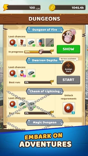 Merge Adventure: Dragons — смесь текстовых RPG и Fallout Shelter. Игрок берёт на себя роль наследника Дома искателей приключений. Ему надо отправлять героев на задания, совмещая одинаковые предметы, чтобы получить из них оружие или еду для HP.