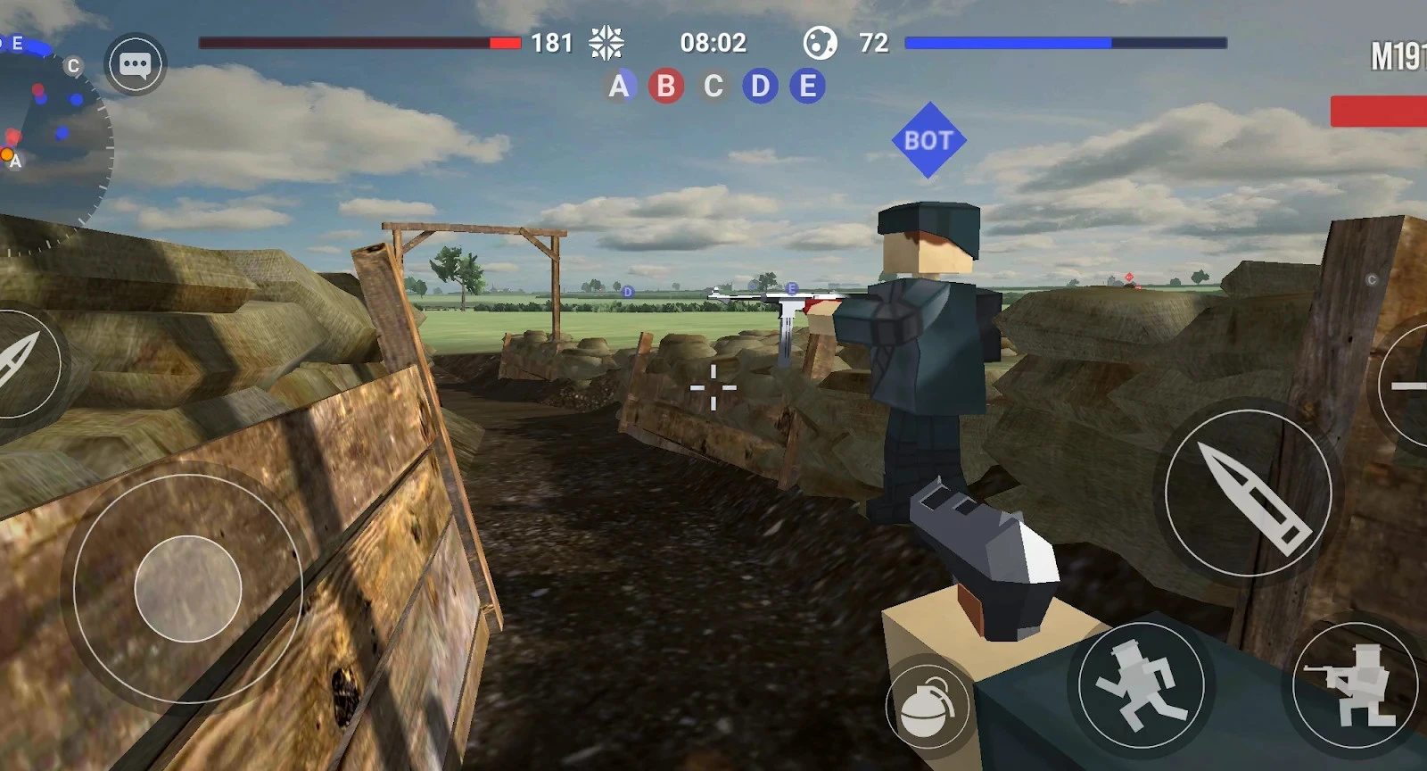 Polyfield — мультиплеерный шутер с большими локациями и геймплеем от первого лица. На картах ваше войско должно захватить пять точек и удержать их. Если судить по тому, что в руках у бойца находится винтовка M1 Garand, то сеттинг игры — Вторая мировая, причём на Западном фронте. Для укрытия можно отсиживаться в кустах или траншеях, хотя большая часть карты — это пустые поля. Радует то, что по противнику можно попасть с большого расстояния.