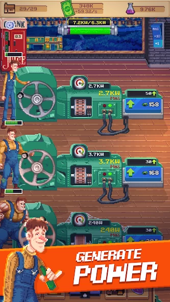 По сюжету вы будете управлять старинной электростанцией, чтобы подавать свет в разные города. Поначалу для генерации энергии придётся нанимать рабочих, которые вращают турбины — благодаря этому не нужно будет самостоятельно тапать по экрану. А чем больше энергии вы сможете вырабатывать, тем больше домов можно построить в округе. От размеров города зависит то, сколько бизнесов и клиентов в нём будет. Благодаря этому вы будете зарабатывать больше денег.
