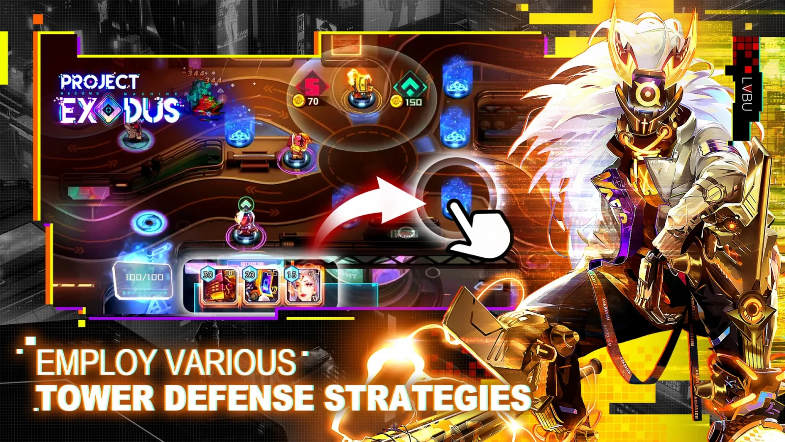 Project Exodus — башенная защита на Андроид. Геймплей в ней разбит на короткие уровни в ходе которых надо отразить волны роботов. Для этого игроки выставляют на специальные позиции персонажей-башен. Они принадлежат к разным классам и стихиям, что помогает придумывать новые сочетания. Интересно, что уже с 3-го уровня вам будет сложно справиться с огромной армией врага, идущей в сторону портала. Стоит пропустить 10 роботов и вы проиграли.
