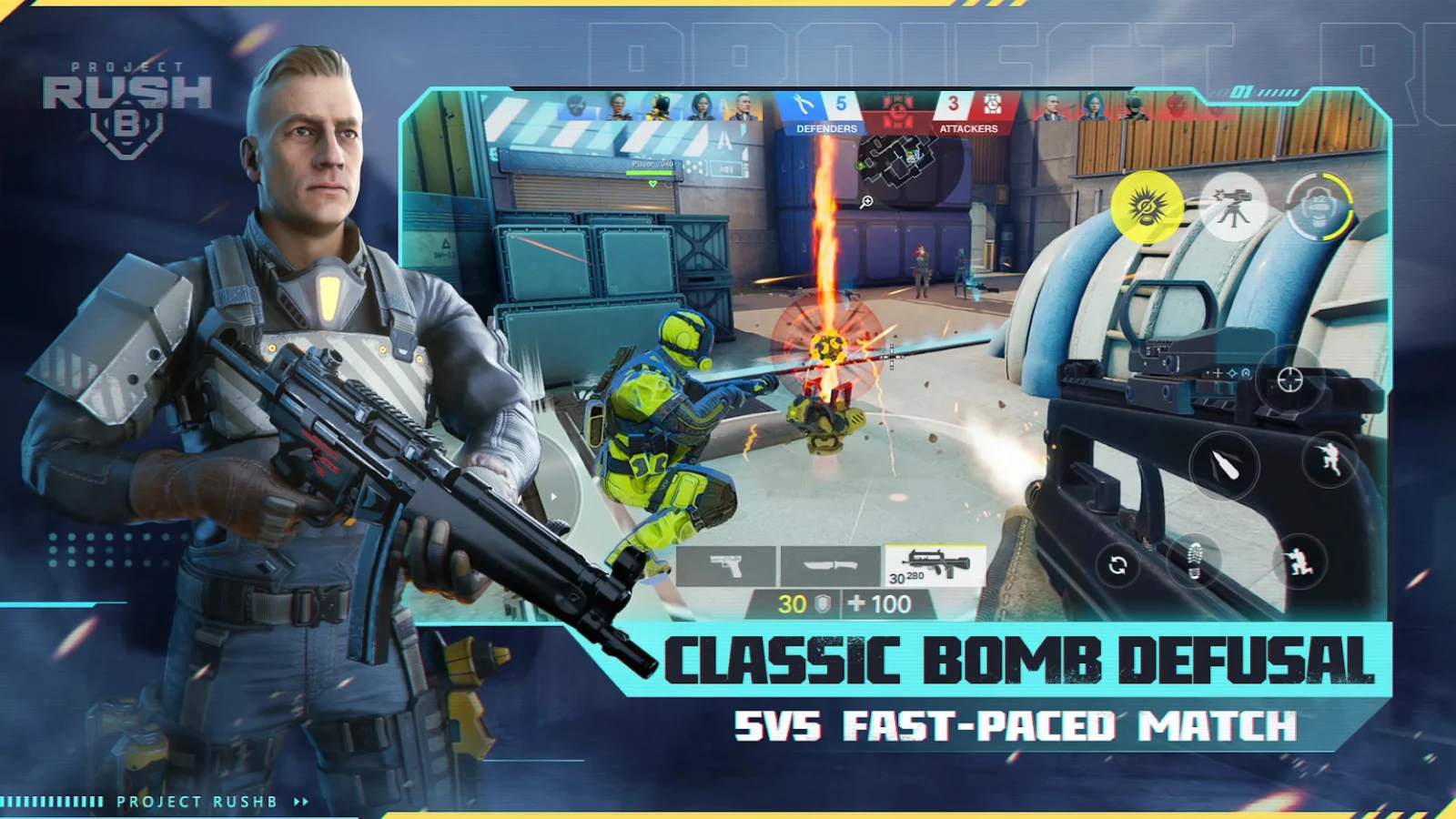 Project RushB — мобильный шутер, который по сеттингу и динамике напоминает Valorant Mobile. Если вы помните, то сейчас у этой игры много конкурентов, один из главных — Hyper Front. В Project RushB игроки разделяются на две команды в формате «5 на 5». Матчи проходят в привычном режиме, «разминирование бомбы». Радует, что карта хоть и маленькая, но локации большие и будто сделаны под консоли и PC.