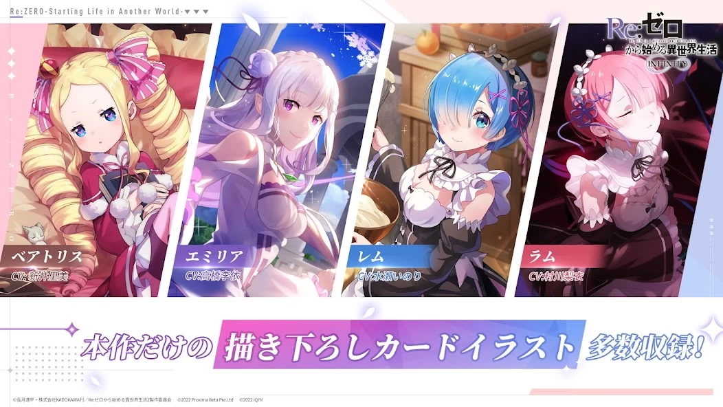 Re:Zero − Starting Life in Another World Infinity — мобильная jRPG, которая выполнена по одноимённому аниме «Re:Zero. Жизнь с нуля в альтернативном мире». Как и Fullmetal Alchemist, она расскажет как о знаковых моментах этой вселенной, так и о новых главах.