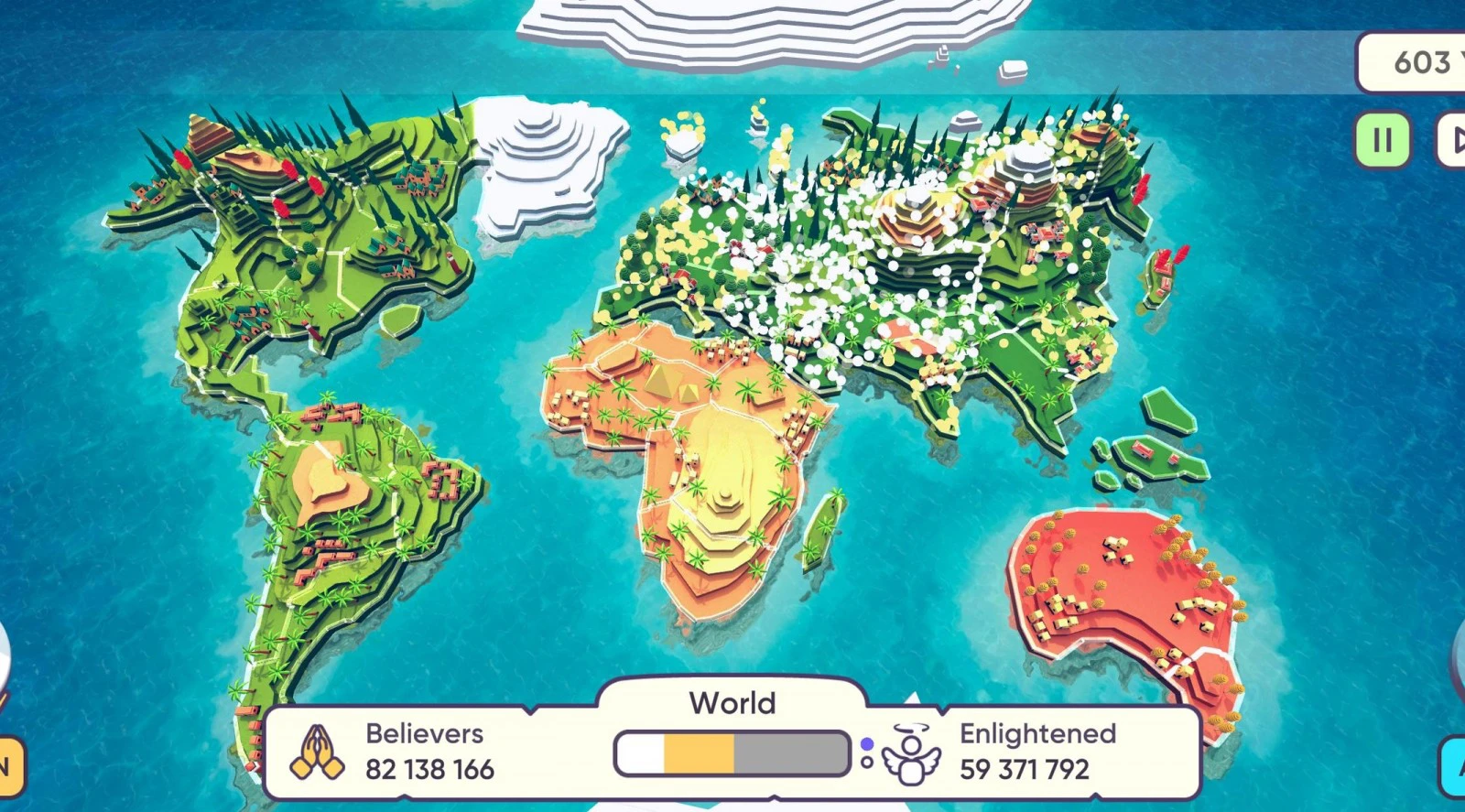 Как можно понять из названия, здесь вы займетесь развитием собственной религии. Выбираете страну, откуда начнет восхождение ваше верование, получаете очки просветления, приобретаете различные способности, адаптируетесь к разным странам и боритесь с фанатиками.