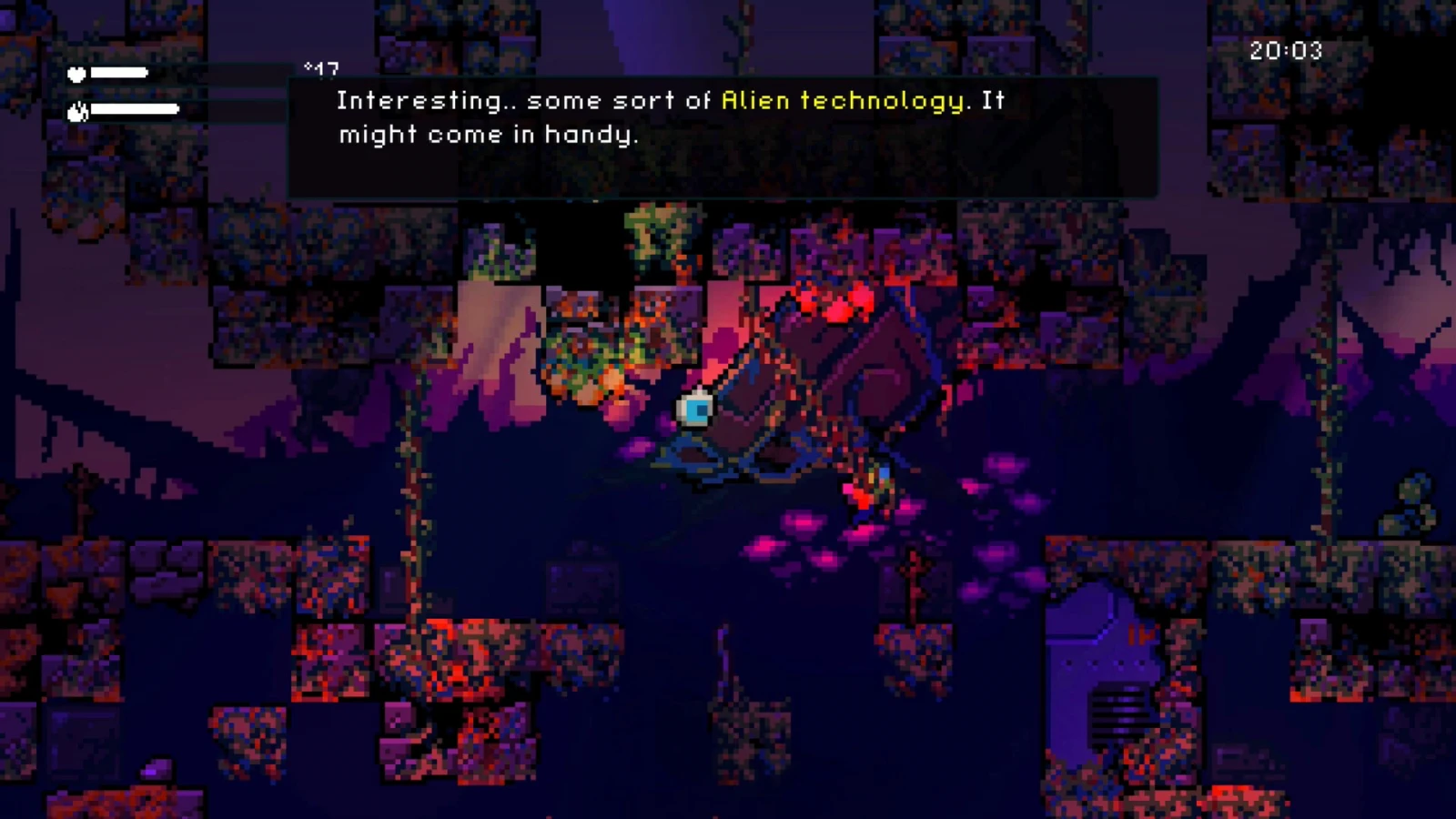Это пиксельный симулятор выживания, в котором вы высаживаетесь на незнакомой планете и отправляетесь в путешествие с целью выжить. Вы будете погружаться все глубже и глубже в местную систему пещер, где скрыты развитые технологии древней цивилизации. Вас ждут в равной мере элементы исследования, выживания и головоломок. Но одна из особенностей — отсутствие насилия.