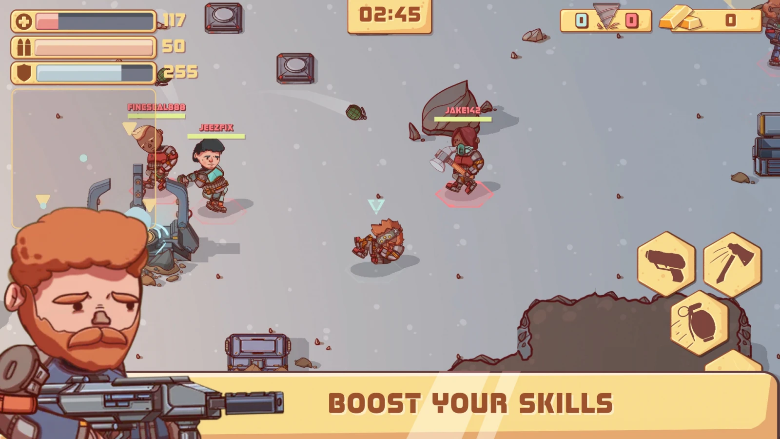 Resource War — экшен на смартфоны с мультиплеером. Вам надо улучшать персонажа при помощи кристаллов и слитков. Делается это посредством покупки экипировки, а именно: пушек, холодного оружия, гранат, брони, масок и очков. Геймплей в Resource War разбит на режимы, один из них — битвы на небольшой арене в формате «3 на 3».