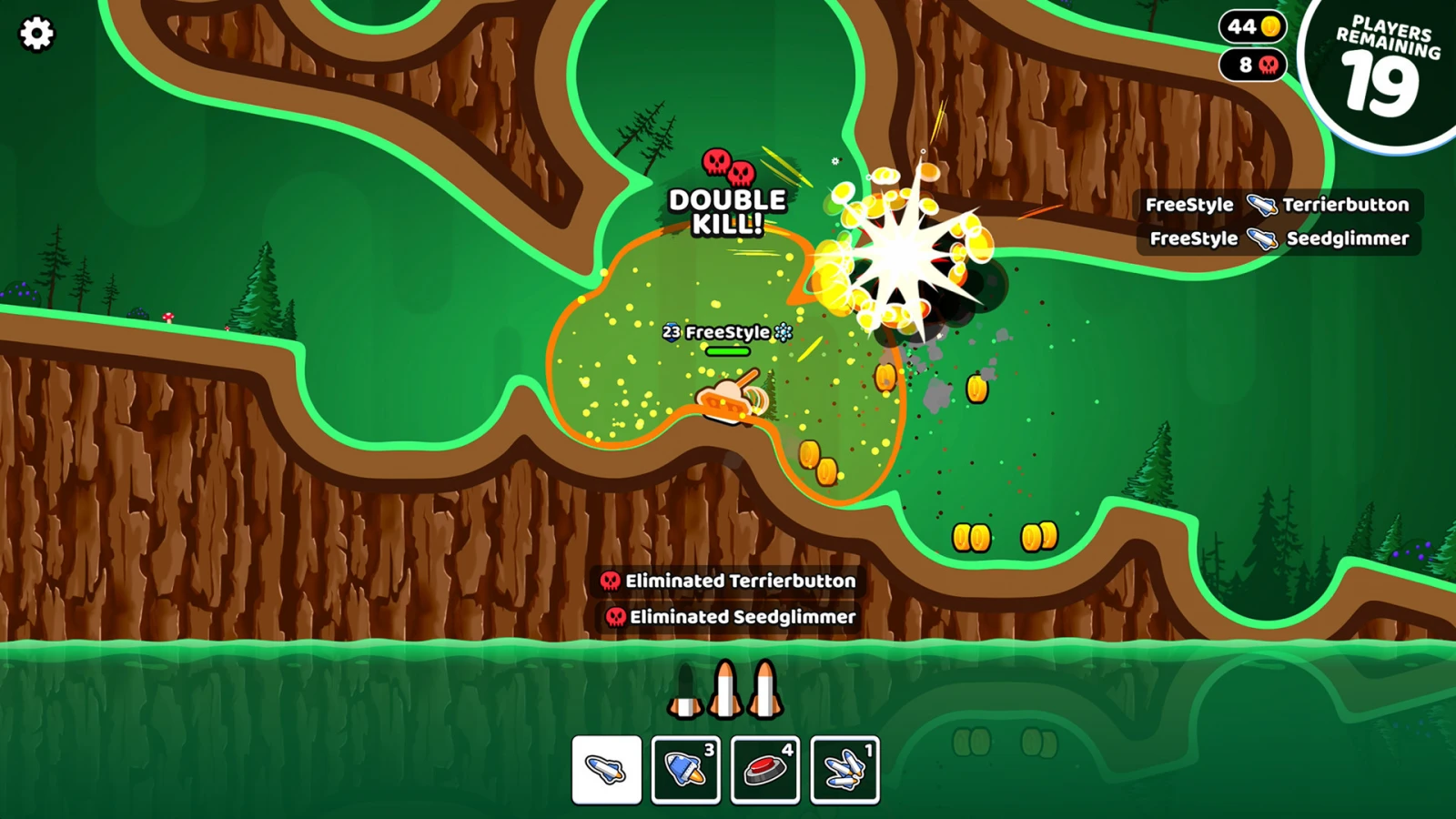 Rocket Bot Royale — мультиплеерный экшен, в котором вместо «червячков» игроки садятся за мультяшные и 2D-танки. Их цель — остаться последними выжившими. Для этого надо собирать монеты и использовать ракеты не только для выстрелов по врагу, но и для затяжных прыжков; причём в воздухе может быть кусок земли, за который танк спокойно цепляется.