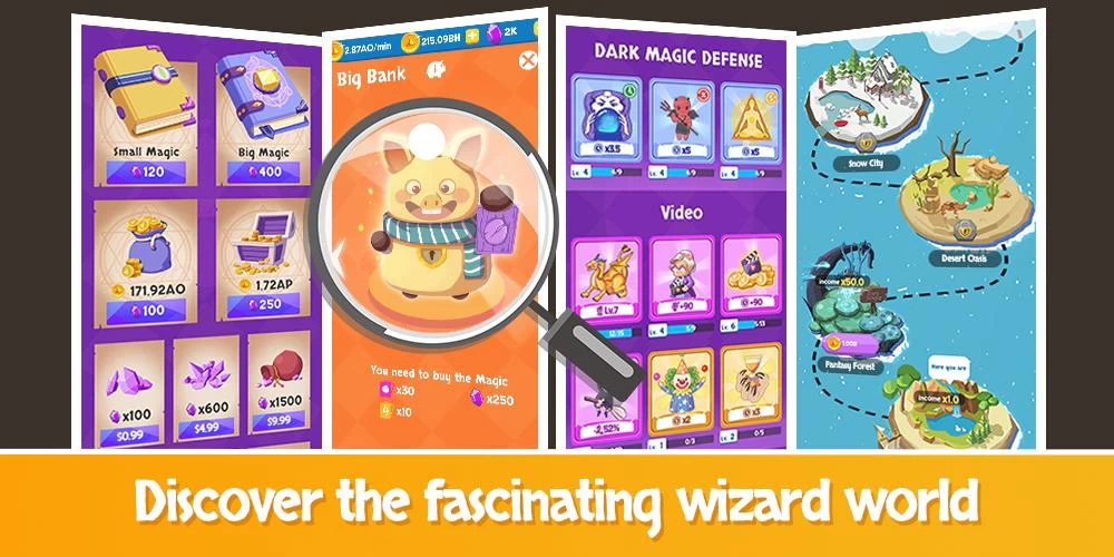 Idle Wizard School - уникальная игра для досуга, элементы кликера и классический геймплей ждут Вас в Школе Волшебников! Захватывающая магическая игра! Она вдохновлена многими волшебными историями и наделяет игроков магией. Вы можете стать школьным магнатом в своём собственном магическом приключении!