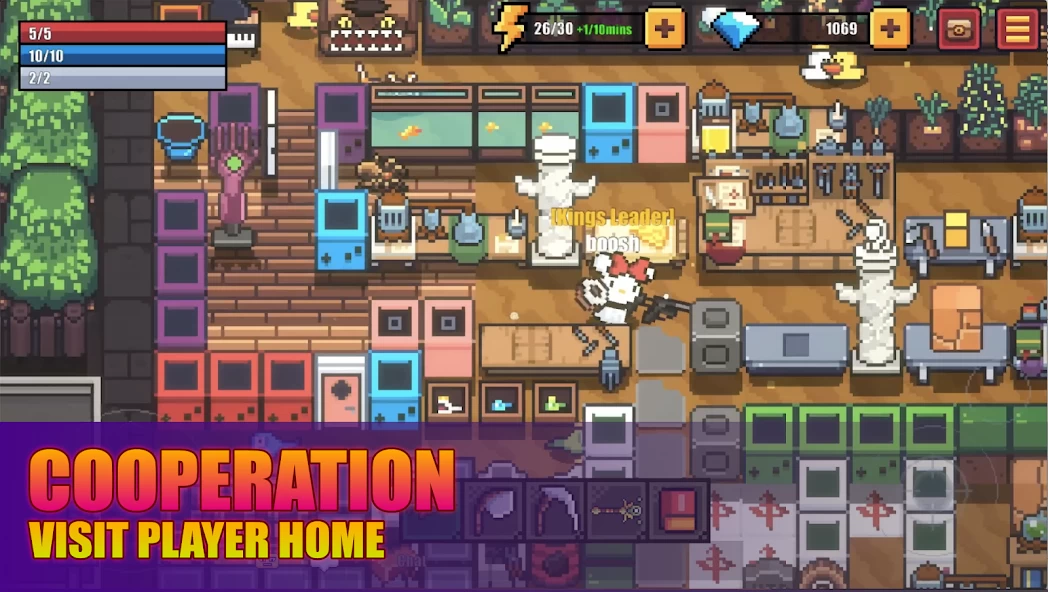 Shooting Survival — мобильная игра в жанре «sandbox». Геймеры смогут выбрать пиксельного аватара и отправиться на уничтожение слизней и прочих существ на коридорных локациях. Прелесть Shooting Survival в мультиплеере на 4 человек. А так как это песочница, то можно заниматься чем угодно — обстреливать врагов или добывать руду с другими материалами, чтобы потом создать что-то новое.