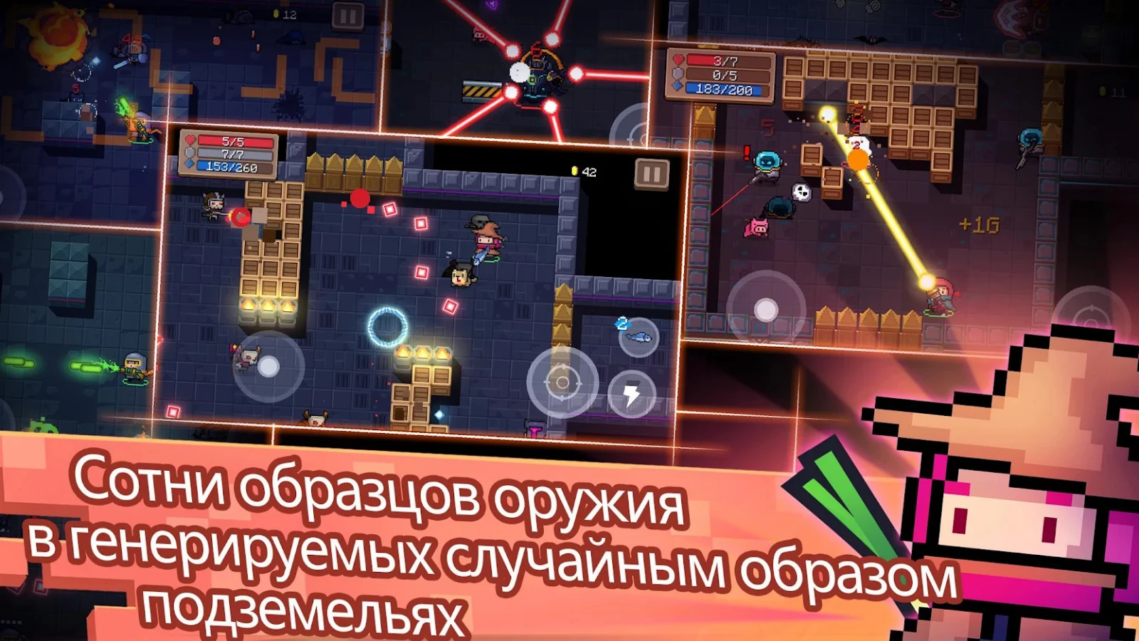 Исследуйте подземелья, собирайте безумное оружие, уклоняйтесь от пуль и застрелите всех! Интуитивно простое управление, невероятно плавный и увлекательный игровой процесс и множество самых разных хитростей.