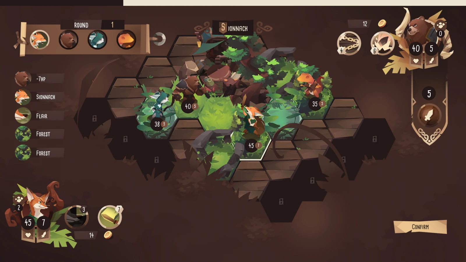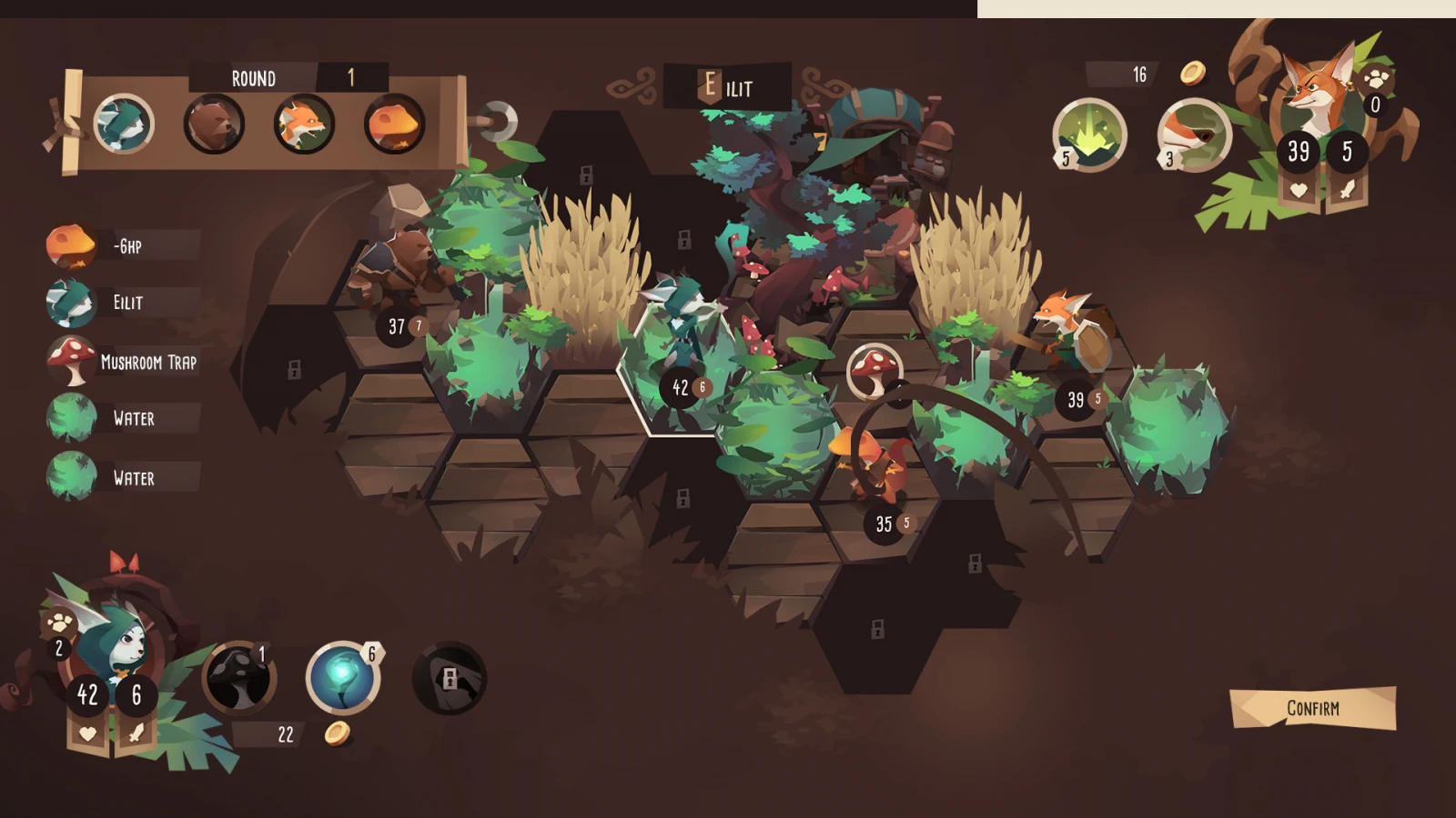 Это пошаговая настольная игра. Она рассчитана на четырёх игроков. Графика словно рисованная от руки. Каждый герой представляет отдельный элемент: землю, воду, огонь и природу. У них свои уникальные скиллы. Главная цель — захватить лес. Для этого мы ходим по клеточкам и переделываем их под свой элемент. Их можно использовать, чтобы наносить другим урон.