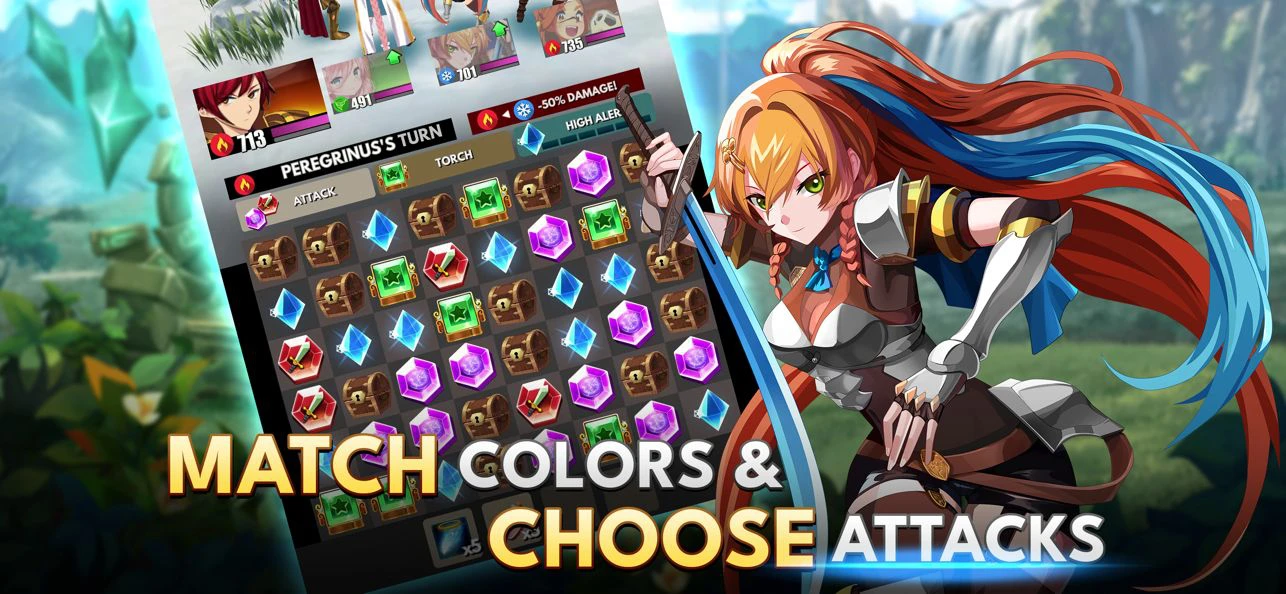 Встречайте — Starsteel Fantasy. Её издаёт Crunchyroll Games, который уже выпустил Princess Connect! Re: Dive с вопящими вайфу. На этот раз мы получаем jRPG с пошаговыми битвами. Графика напоминает Evoland, геймплей вертикальный. Это гача, так что готовьтесь выбивать редких персонажей (спасибо, Genshin Impact). Здесь рисованные аниме-персонажи и вайфу с довольно открытой одеждой. Для ударов по врагу мы должны собирать разноцветные кристаллы в ряд.